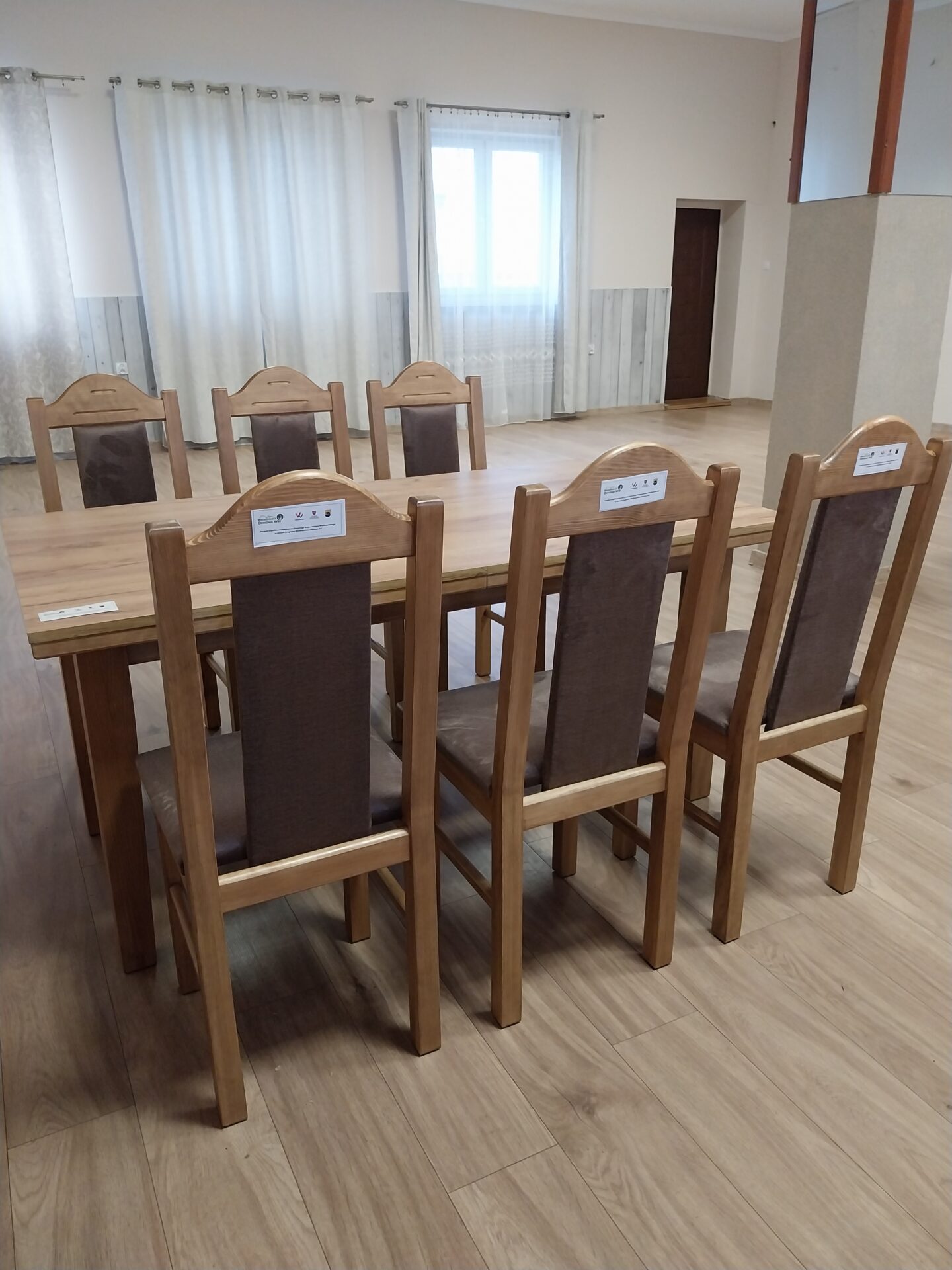 W ramach projektu zakupiono do świetlicy wiejskiej w Zielonej Wsi następujące wyposażenie: drewniane stoły – 5 szt. i drewniane krzesła – 50 szt.
